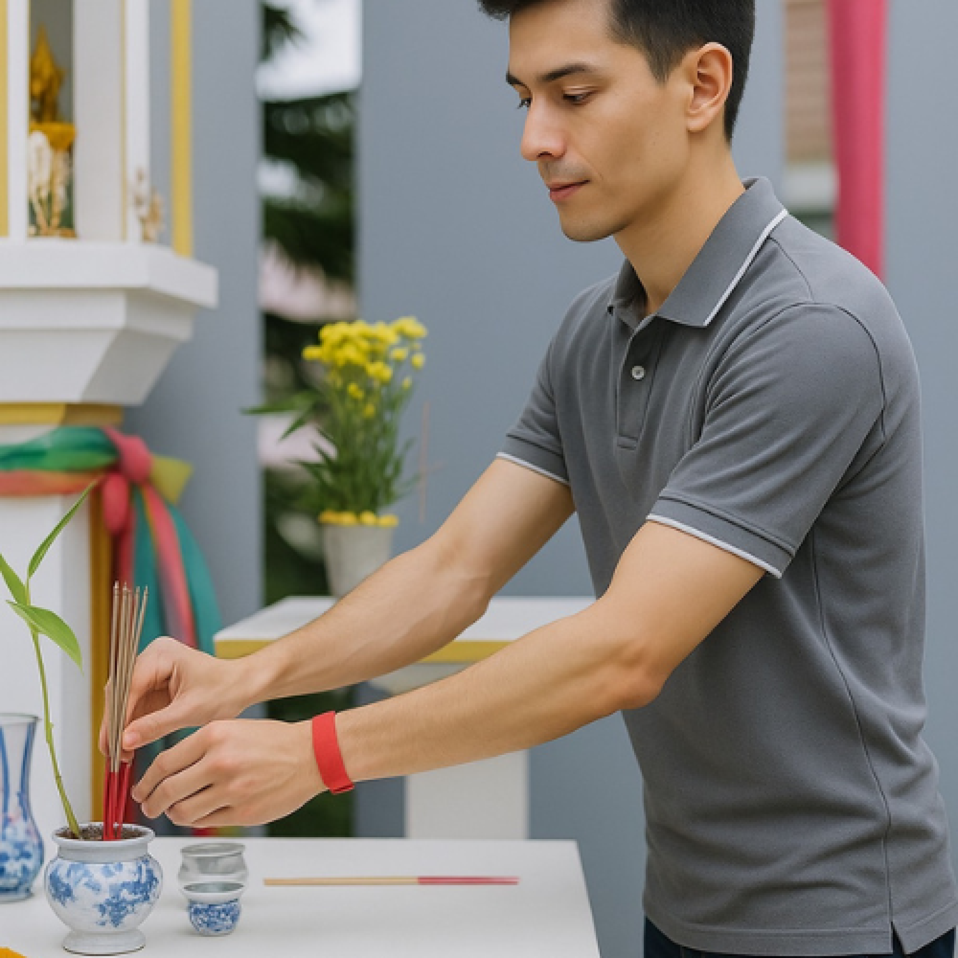 4.เลือกจำนวนธูปตามความหมาย ตั้งใจอธิษฐานให้สิ่งศักดิ์สิทธิ์ปกปักรักษา กล่าวคำบูชาหรือคาถาไหว้